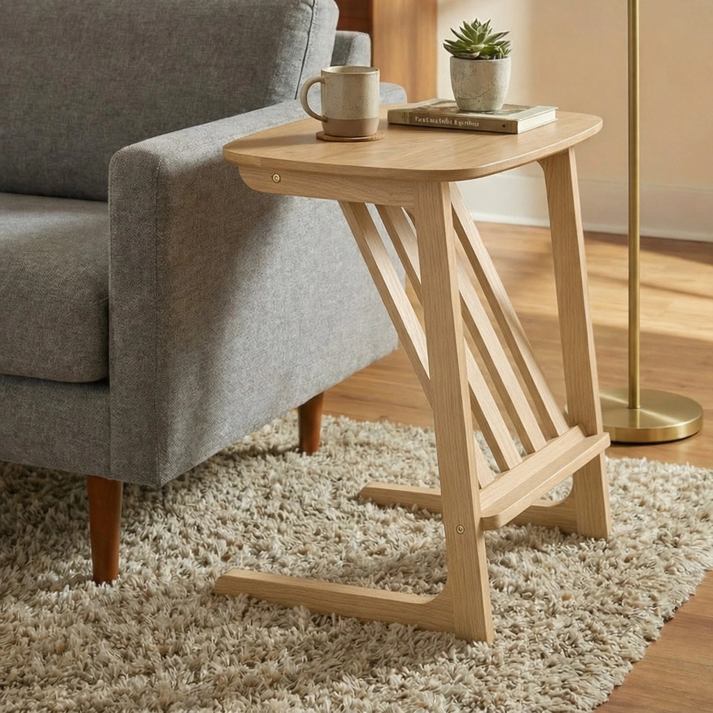 Designed to be as practical as it is stylish, this compact table features an integrated magazine rack, ideal for keeping books, newspapers, or tablets neatly organised and close at hand. Its balanced proportions make it a perfect fit beside sofas, armchairs, or even as a bedside table, without overwhelming your space.