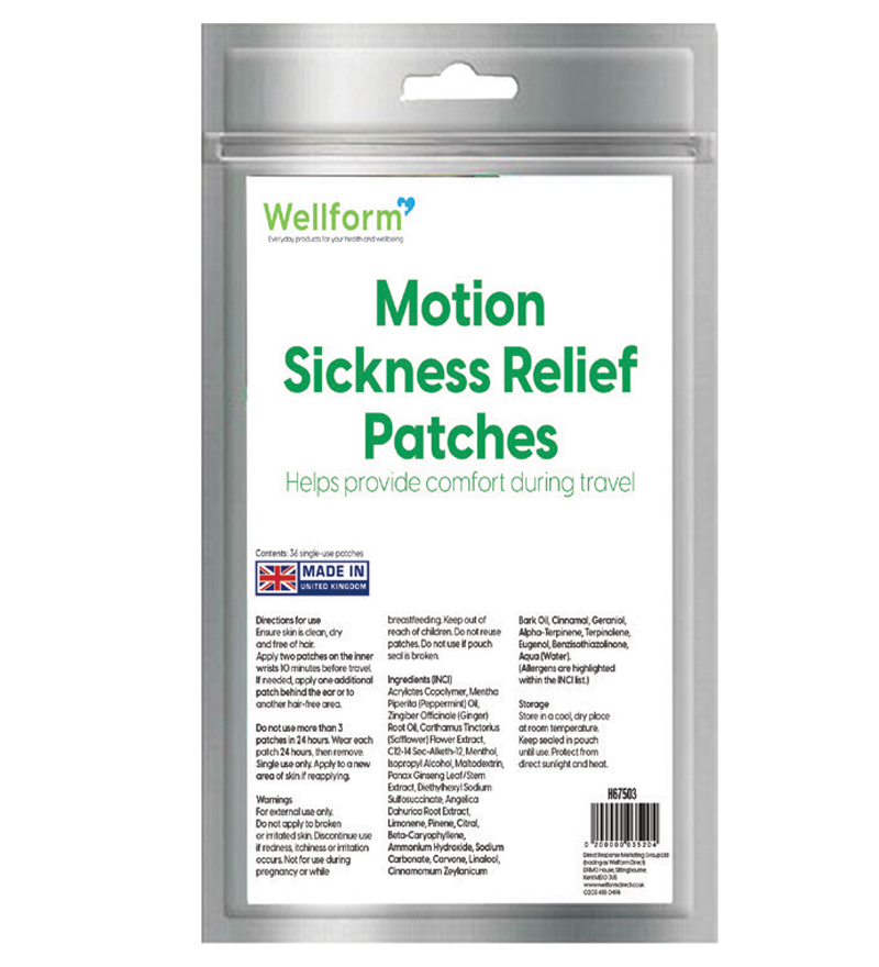 Motion sickness can make travelling an uncomfortable and stressful experience, causing nausea, dizziness, and fatigue during journeys by car, plane, or boat. These easy-to-use patches provide a natural and convenient way to help prevent these symptoms, ensuring smoother, more comfortable travel for adults and children alike. Designed for everyday use and long trips, they offer lasting relief without the need for pills or drowsy side effects.Each patch contains a blend of natural herbal ingredients, including extracts traditionally used to ease motion-related discomfort. When applied behind the ear, the patch releases its active components gradually through the skin, providing up to 72 hours of continuous support. The discreet, lightweight design makes it ideal for any form of travel, while its adhesive backing ensures it stays securely in place, even during long journeys.These patches offer an effective, mess-free alternative to tablets or chewing gums, providing steady relief without causing drowsiness or dry mouth. Safe, comfortable, and easy to apply, they are suitable for all types of travel and can be used by both adults and older children. With long-lasting performance and natural ingredients, they’re a reliable choice for anyone who wants to travel with confidence and comfort.