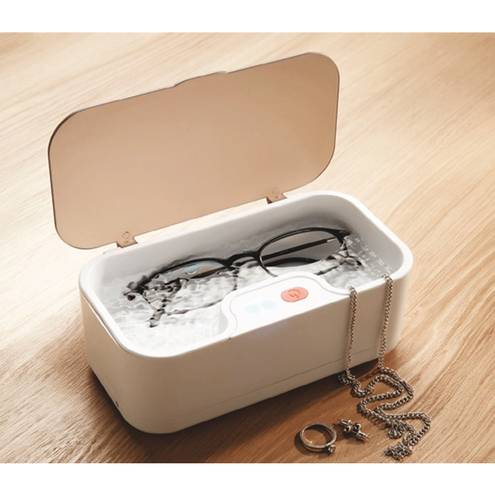 Using ultrasonic technology, it generates high-frequency sound waves to remove dirt and grime from even hard-to-reach areas. The compact design allows for easy placement on desks or countertops, while the simple one-touch operation makes it user-friendly. Items are cleaned gently yet effectively without risk of damage, ensuring safe use on delicate surfaces.