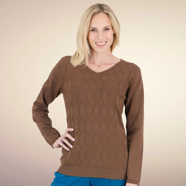 Available in classic fudge or silver, this versatile sweater is simple to style and easy to care for, making it perfect for older women who value both comfort and understated elegance.