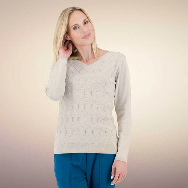 A simple, elegant cotton sweater with woven detailing and ribbed finishes for all-day comfort
